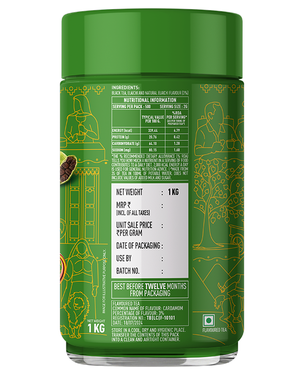 - ● Freshness-Lock Jar Pack : Convenient 1kg airtight jar designed to preserve the natural elaichi aroma, flavour and strength. Easy to store and scoop, perfect for individuals and families who enjoy traditional elaichi chai.